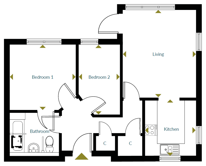 - Two bedroom ground floor apartment