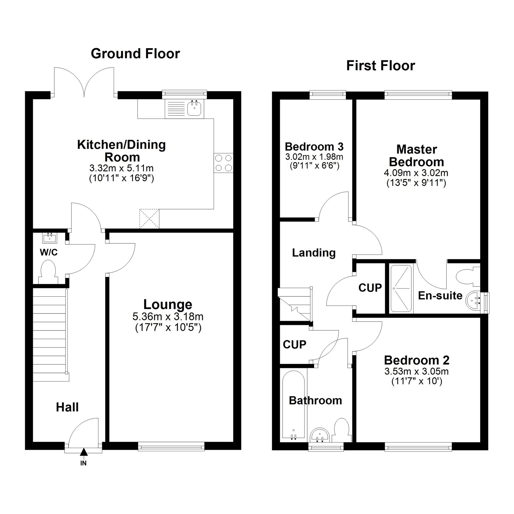 To the first floor are two generously sized double bedrooms with the Master bedroom featuring an en-suite shower facility. Bedroom 3 is a good sized single and could alternatively be used as a home office/study if required.