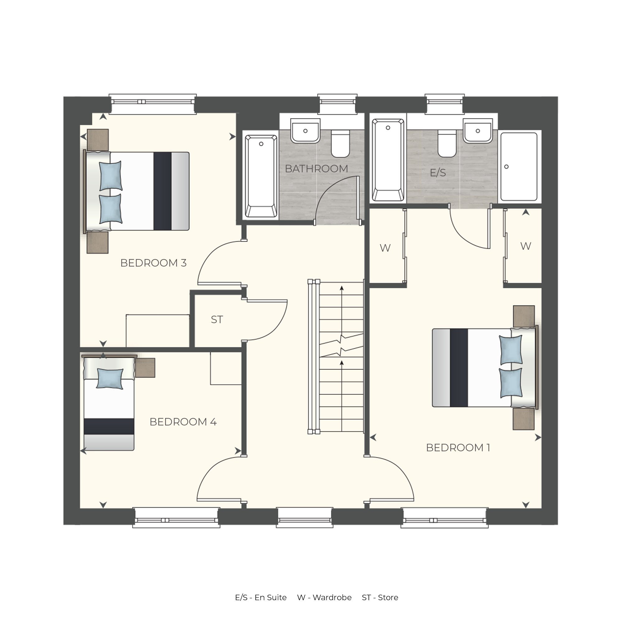 - Luxurious four-piece en suite with rainfall shower to the principal bedroom.
