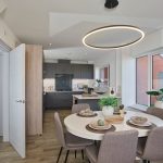- Spacious open-plan kitchen/dining/family area with Bosch appliances, stone worktops, and LED lighting.